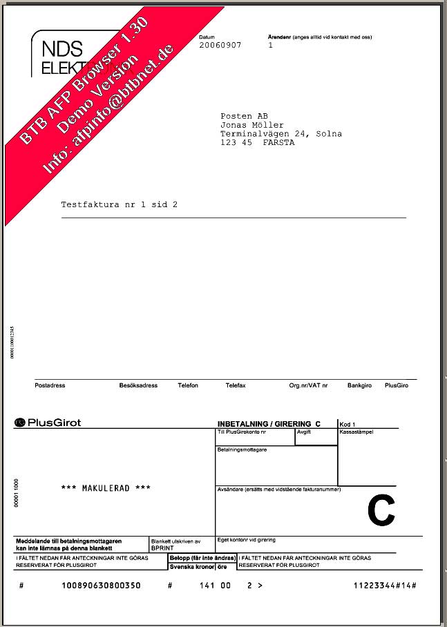 Bprint: AMF Pension skriver ut bank- och postgiroinbetalningskort med BPRINT. Se detta exempel.
